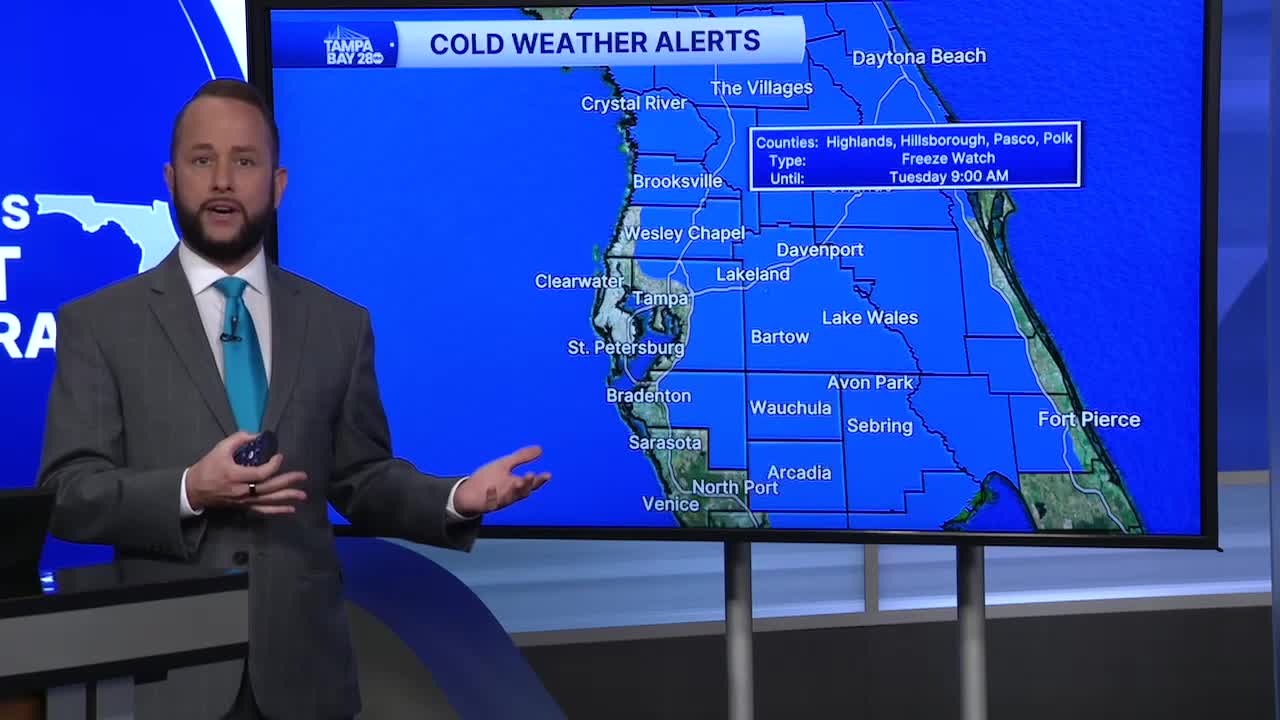 Tuesday morning, we'll see a freeze inland and north. Temps could dip to 30 in many areas with wind chills in the 20s!